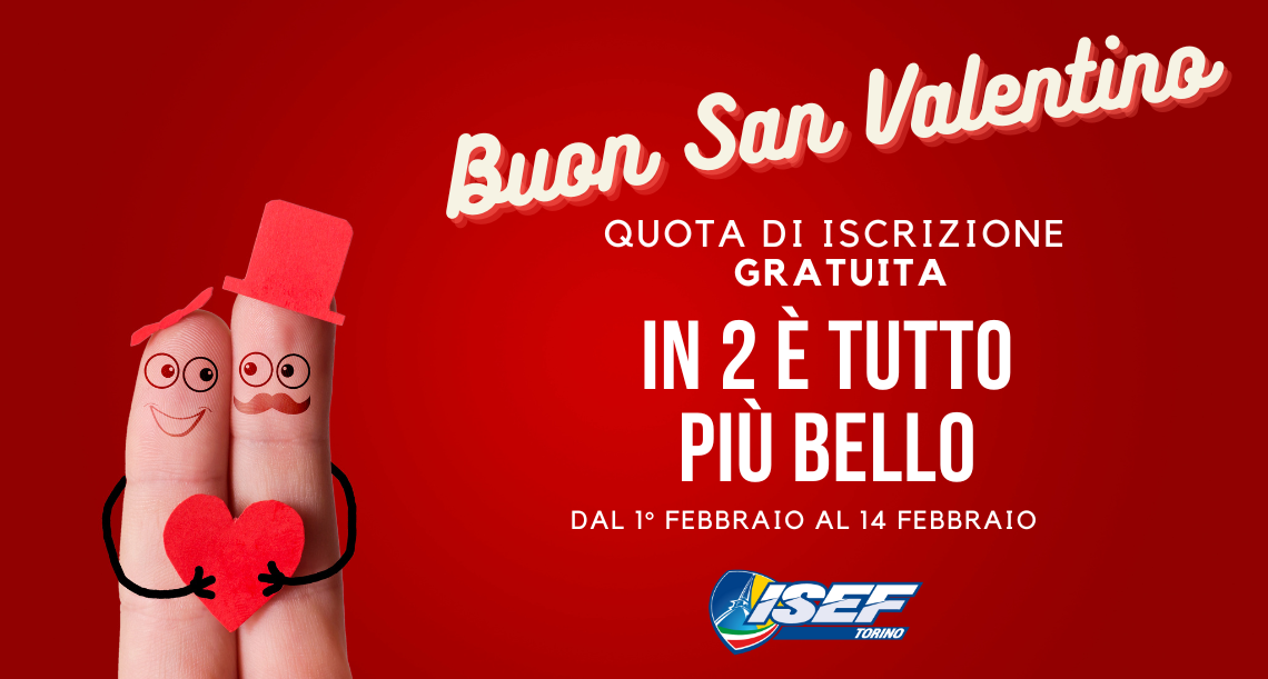 Dal 1° al 14 Febbraio 2023 porta la tua persona del cuore e iscrivetevi ad uno dei corsi dell’ISEF.