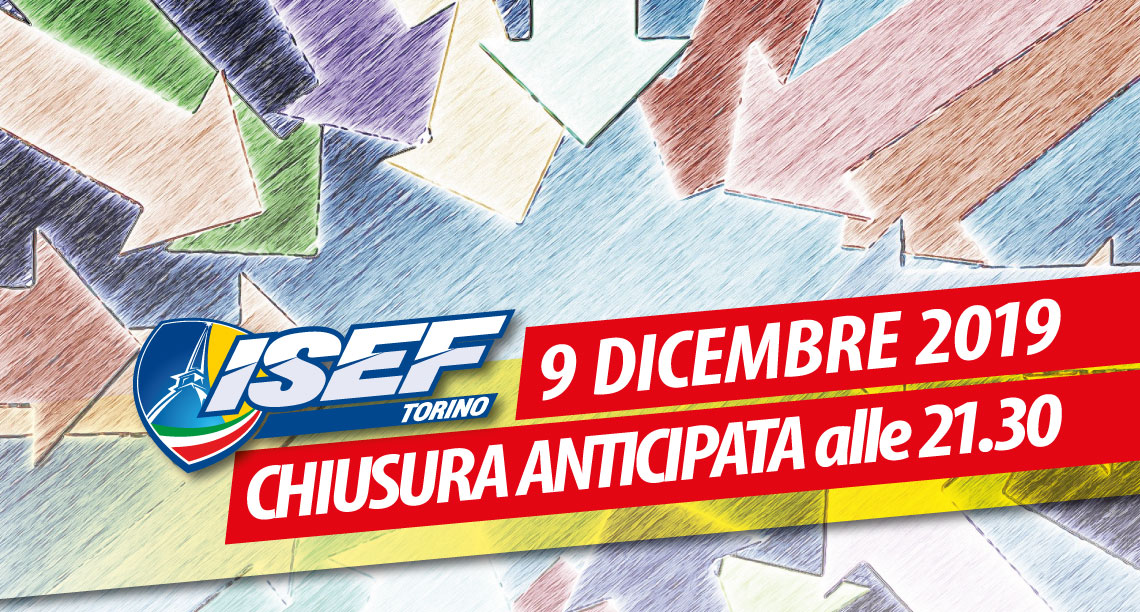 Avviso per tutti gli utenti... lunedì 9 dicembre 2019 la struttura chiuderà alle 21.30, ci scusiamo per il disagio! Lo staff di ISEF Torino